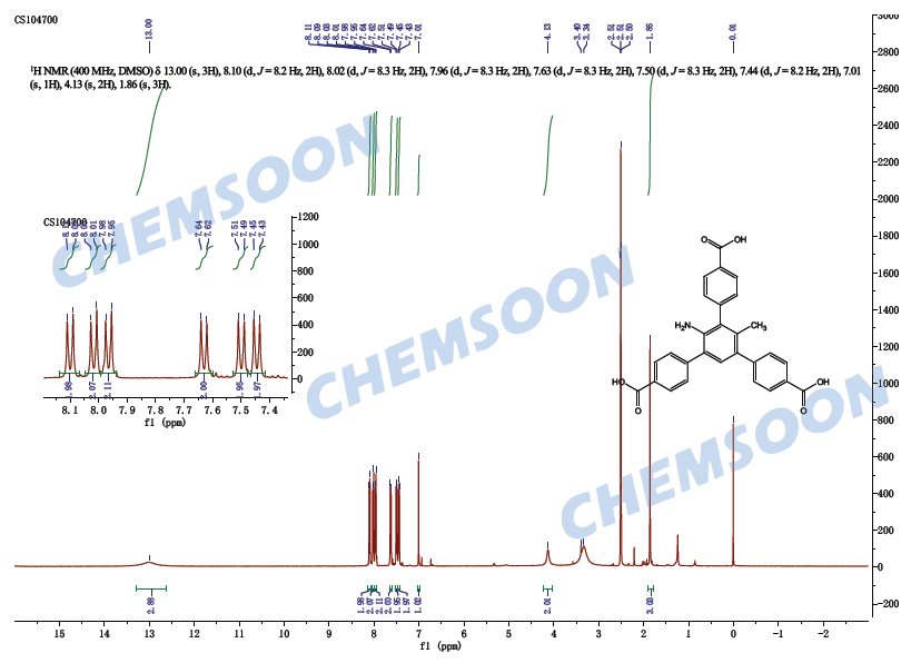 产品名称:2'-amino-5'-(4-carboxyphenyl)-4'-methyl-[1,1':3',1''-terphenyl]-4,4''-dicarboxylic acid