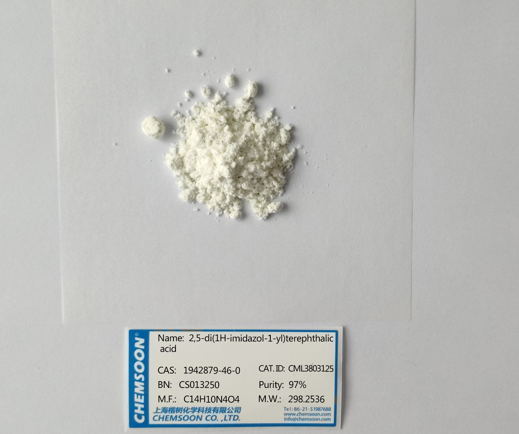 其他名称: 2,5-二(1H-咪唑-1-基)对苯二甲酸;H2BTA; H2DTA; H2DimTA;2,5-di(1H-imidazol-1-yl)terephthalic acid