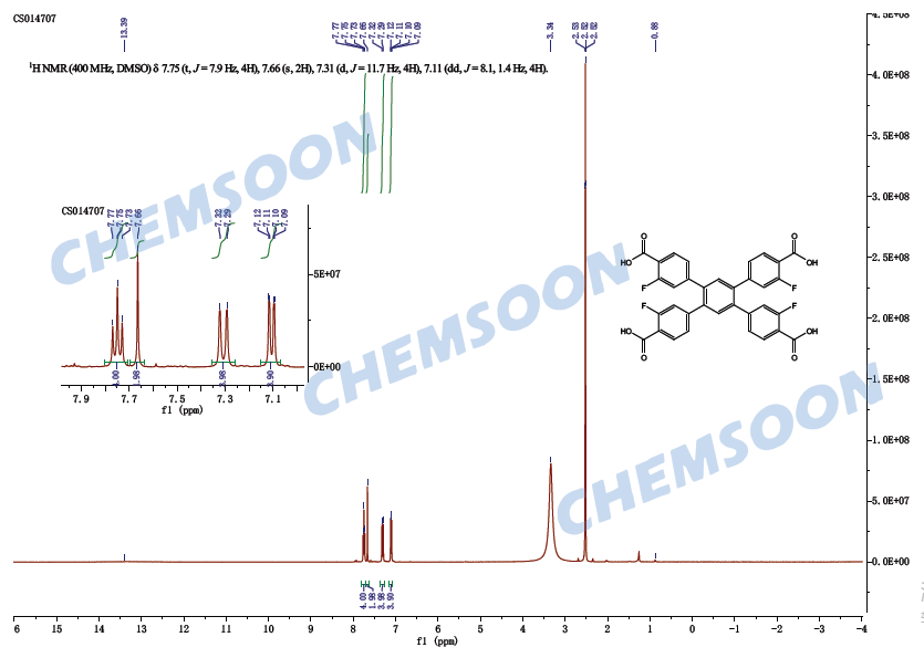 产品名称:4',5'-bis(4-carboxy-3-fluorophenyl)-3,3''-difluoro-[1,1':2',1''-terphenyl]-4,4''-dicarboxylic acid