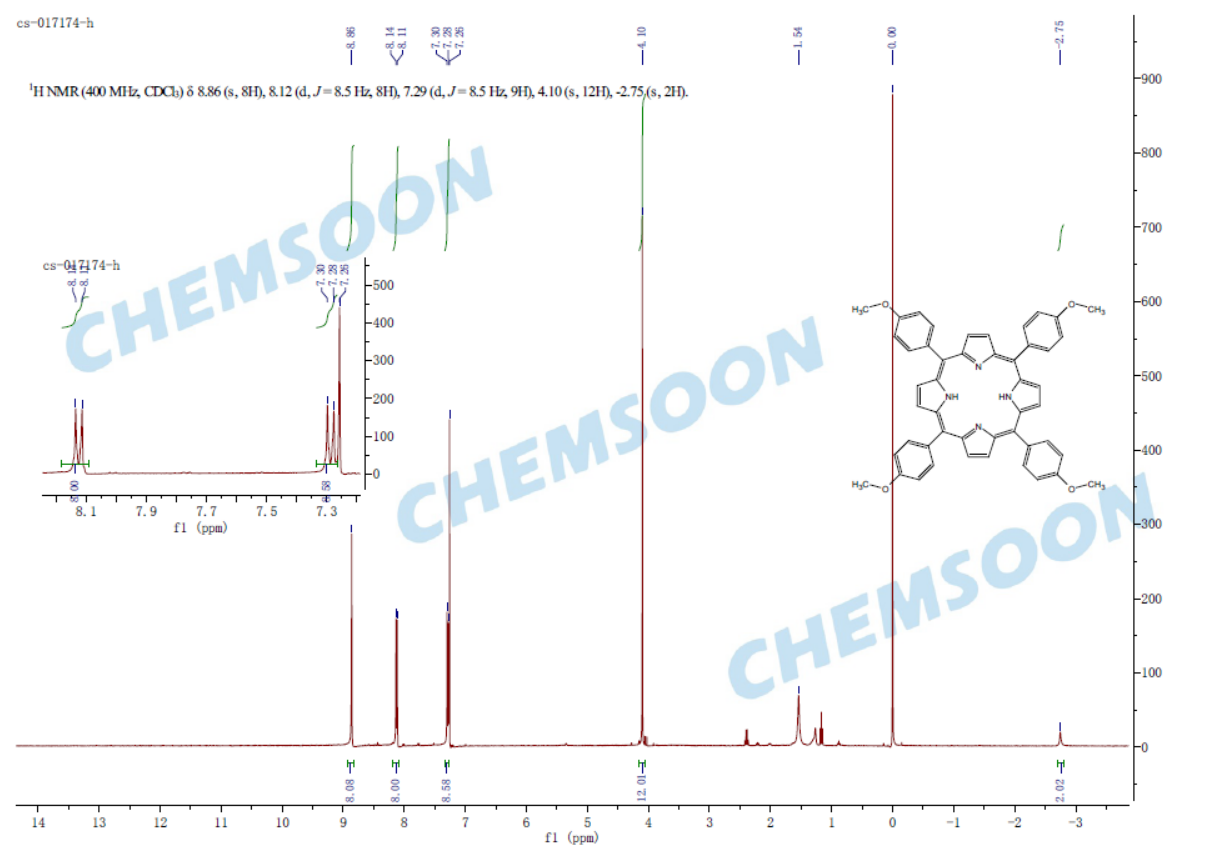产品名称:5,10,15,20-Tetrakis(4-Methoxyphenyl)-21H,23H-Porphine