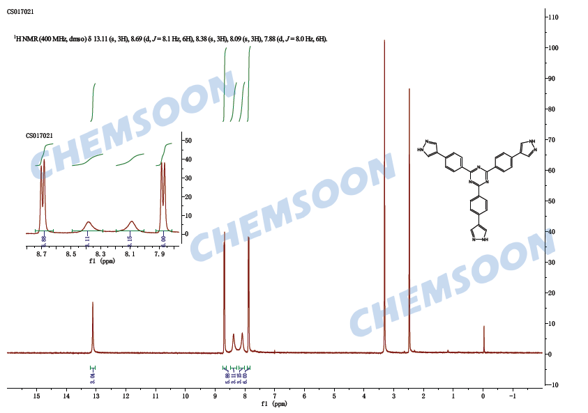 产品名称:2,​4,​6-​tris(4-​(1H-​pyrazol-​4-​yl)​phenyl)​-​1,​3,​5-​triazine