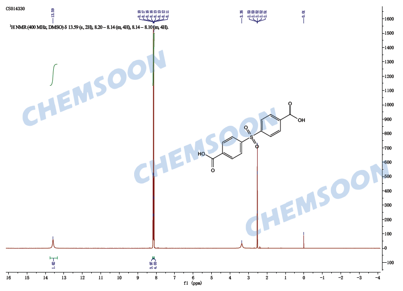 其他名称:H2SDB; H2DCPS ; 4,4'-Sulfonylbis[benzoic acid]; 4,4'-Dicarboxydiphenyl sulfone; 4,4'-Sulfonyldibenzoic acid; Bis(4-carboxyphenyl) sulfone; Diphenylsulfone-4,4'-dicarboxylic acid