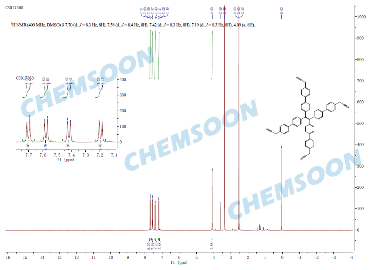 产品名称:2,2',2'',2'''-(ethene-1,1,2,2-tetrayltetrakis([1,1'-biphenyl]-4',4-diyl))tetraacetonitrile