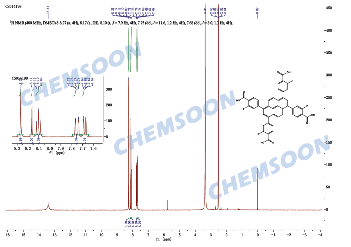 产品名称:4,4',4'',4'''-(pyrene-1,3,6,8-tetrayl)tetrakis(2-fluorobenzoic acid)