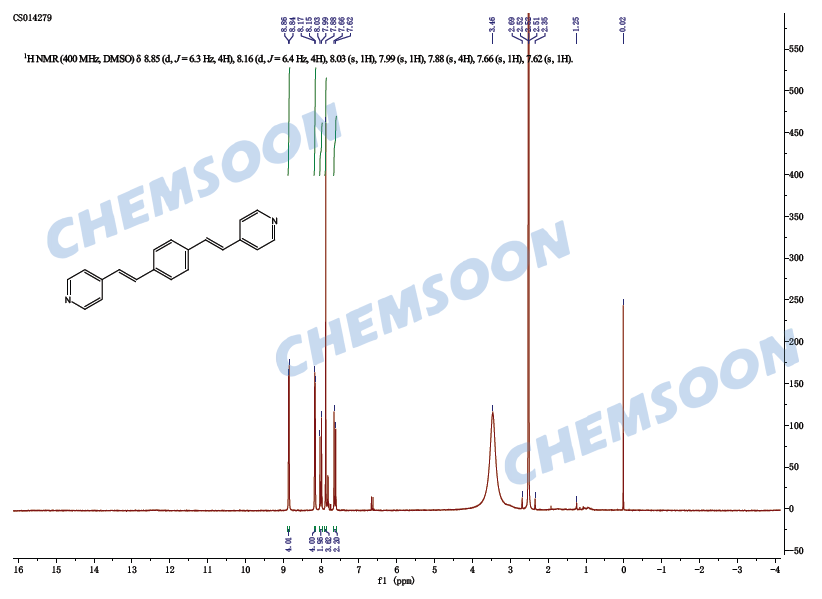 产品名称:4,4'-(1,4-phenylenedi-2,1-ethenediyl)bis-Pyridine (E configuration)