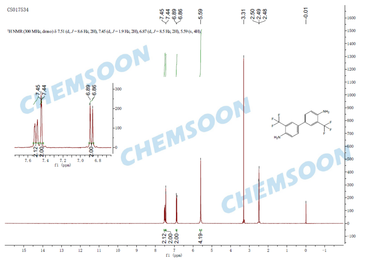 其他名称:;3,3'-Bis(trifluoromethyl)[1,1'-biphenyl]-4,4'-diamine; 3,3'-Bis(trifluoromethyl)-4,4'-diamino-1,1'-biphenyl; 3,3'-Bis(trifluoromethyl)-4,4'-diaminobiphenyl; 3,3'-Bis(trifluoromethyl)benzidine