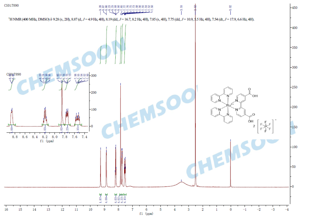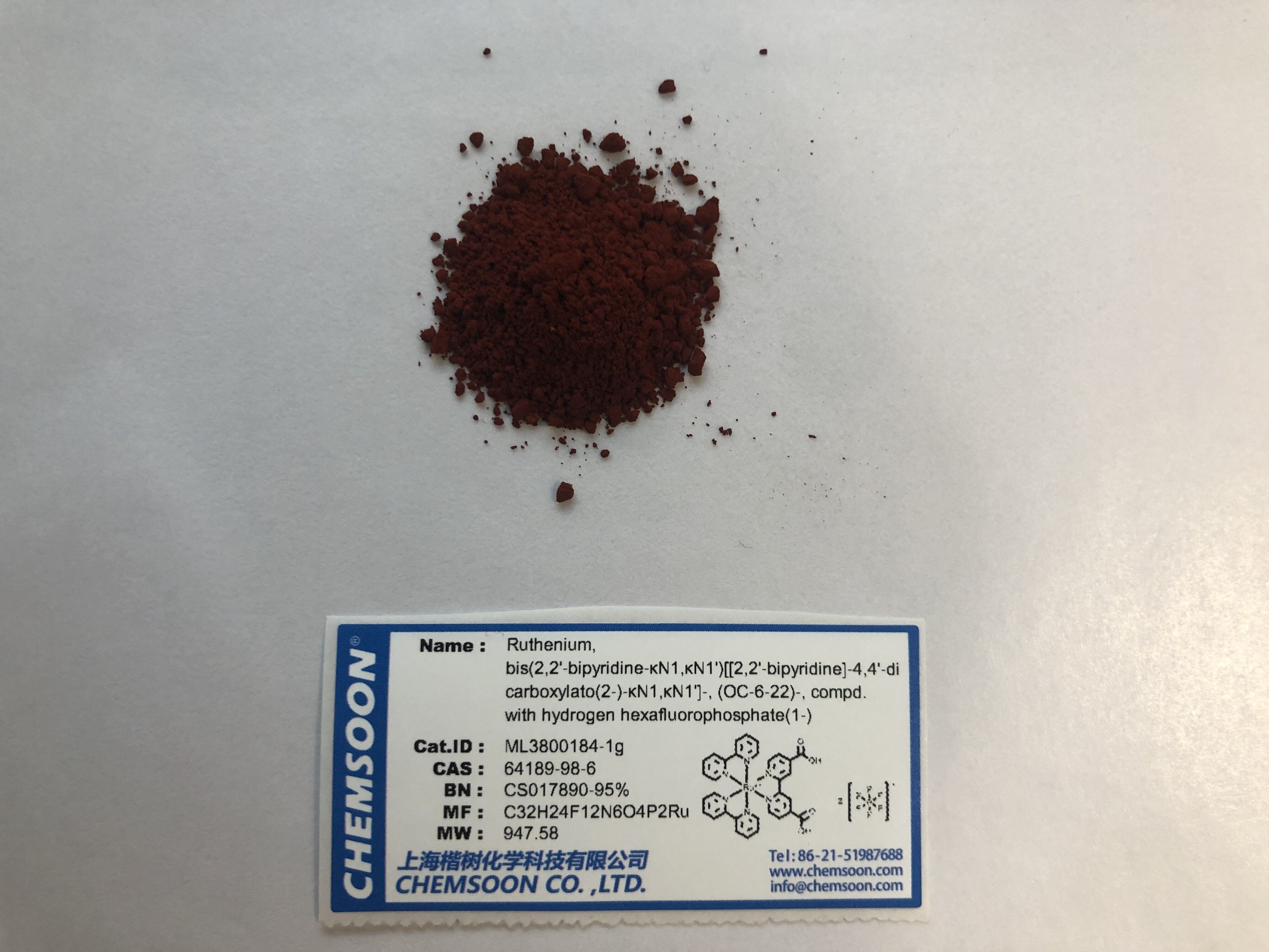 产品名称:Bis(2,2'-bipyridyl)(4,4'-dicarboxyl-2,2'-bipyridyl)ruthenium(II) bishexafluorophosphate