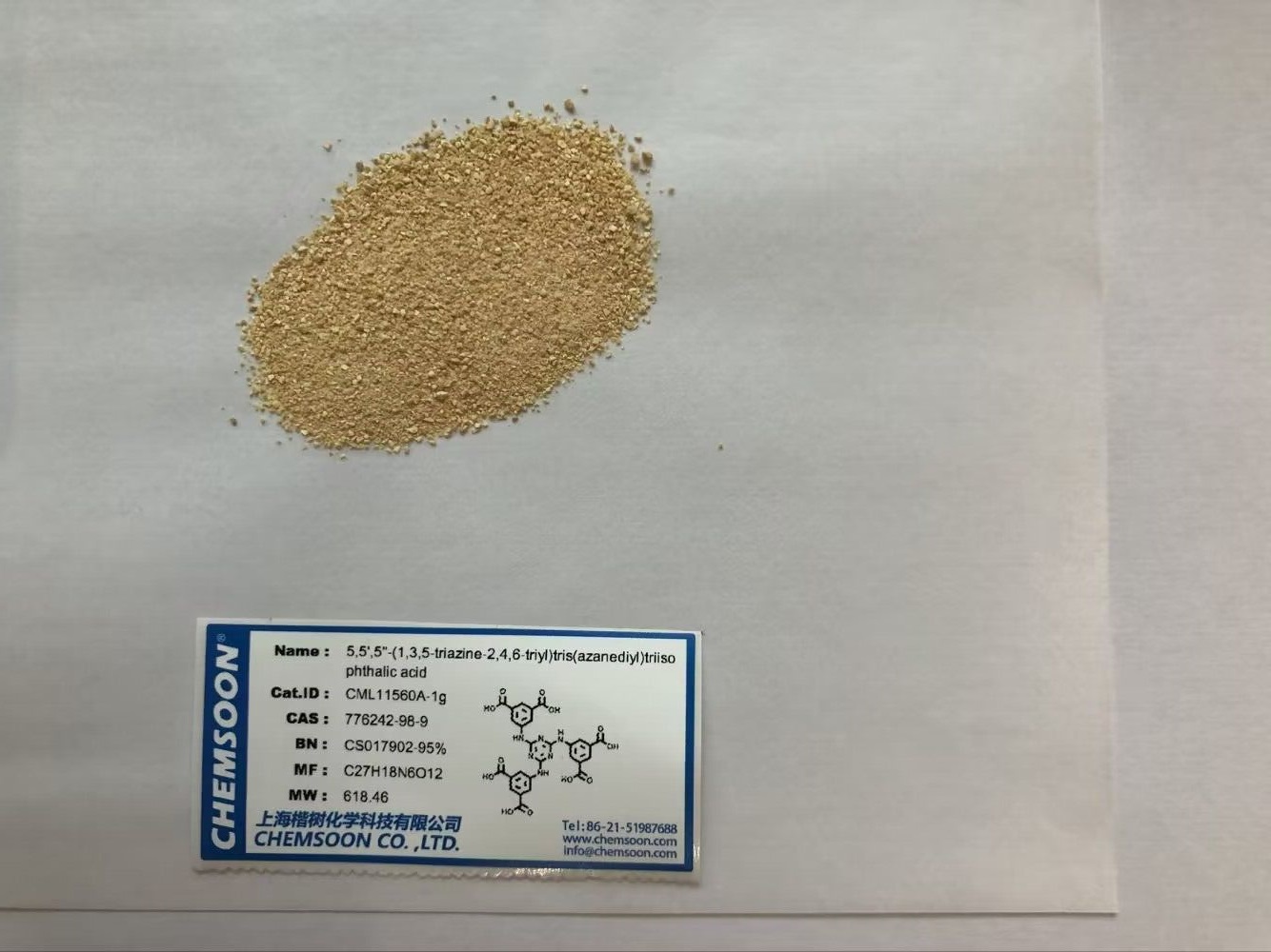 其他名称:H6TDPAT; TATAT;5,5',5''-(1,3,5-Triazine-2,4,6-triyltriimino)tris[1,3-benzenedicarboxylic acid]; 2,4,6-Tris(3,5-Dicarboxyphenylamino)triazine; 5,5',5''-(1,3,5-triazine-2,4,6-triyl)tris(azanediyl)triisophthalate